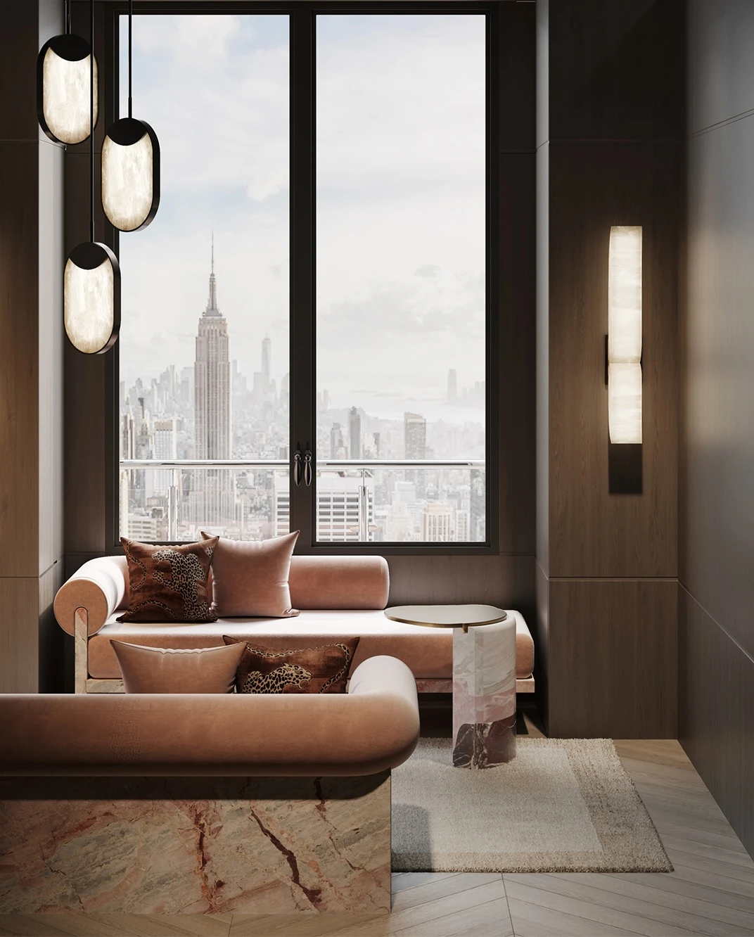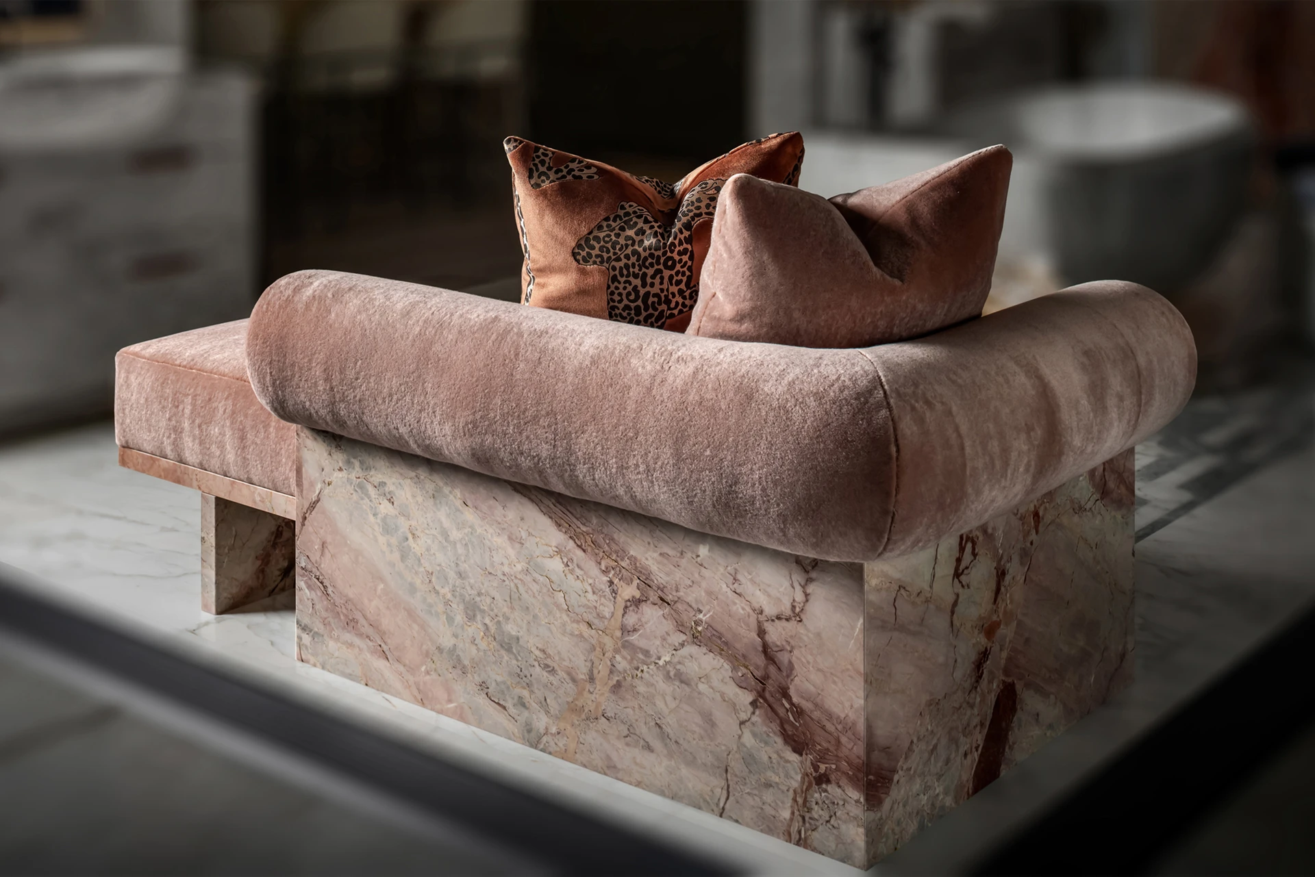 Rosa Chiara marble base, Mohair silk upholstery