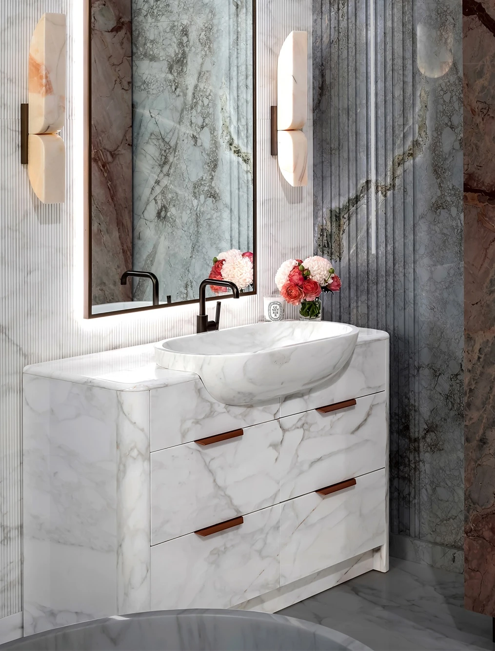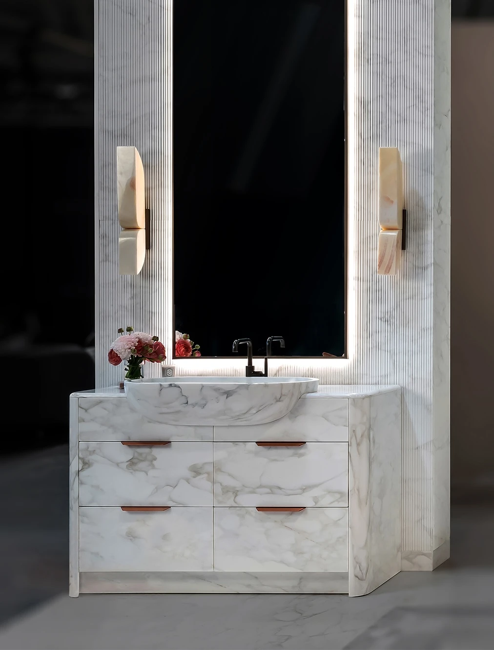 Bianco Sivec Marble Vanity Carved From a Marble Block